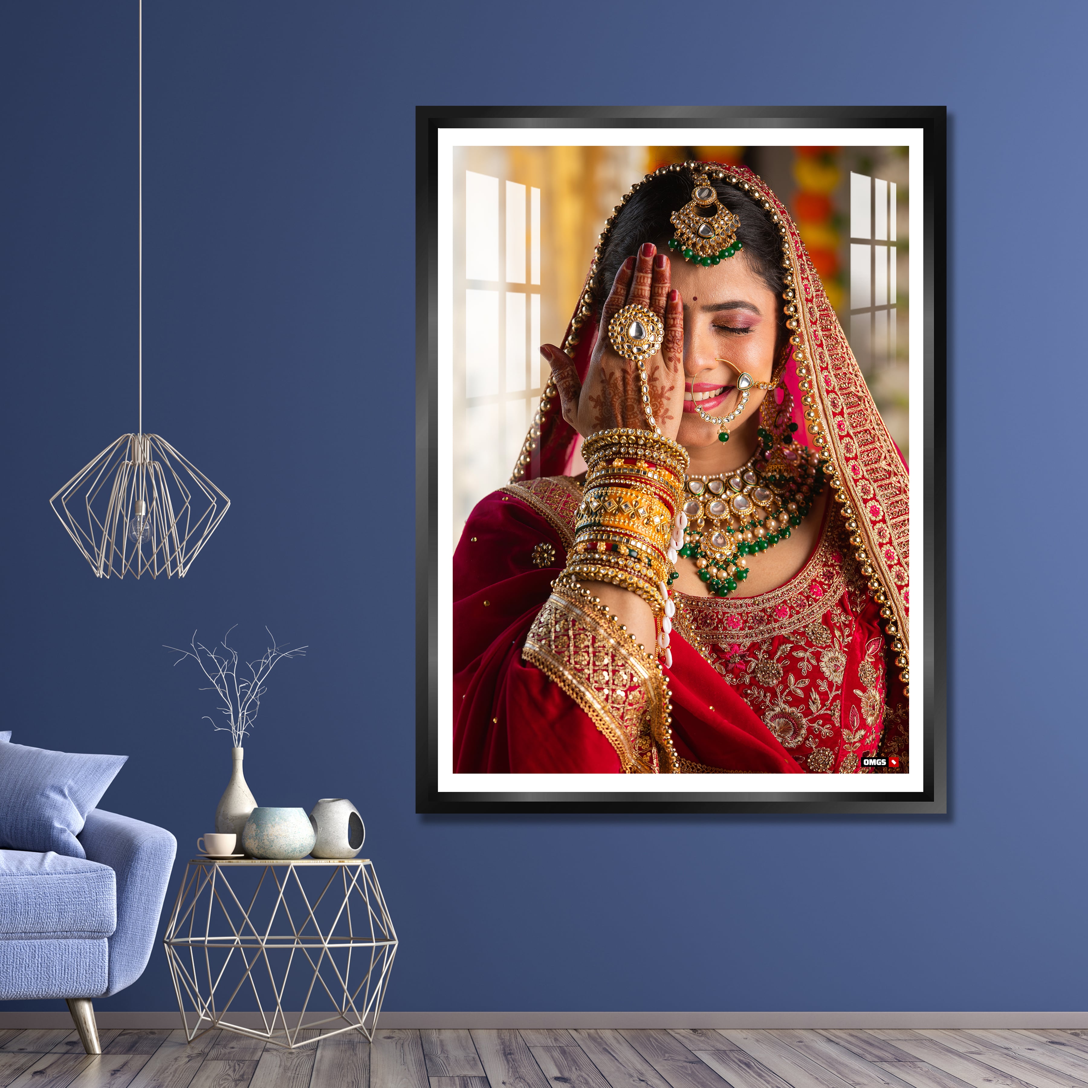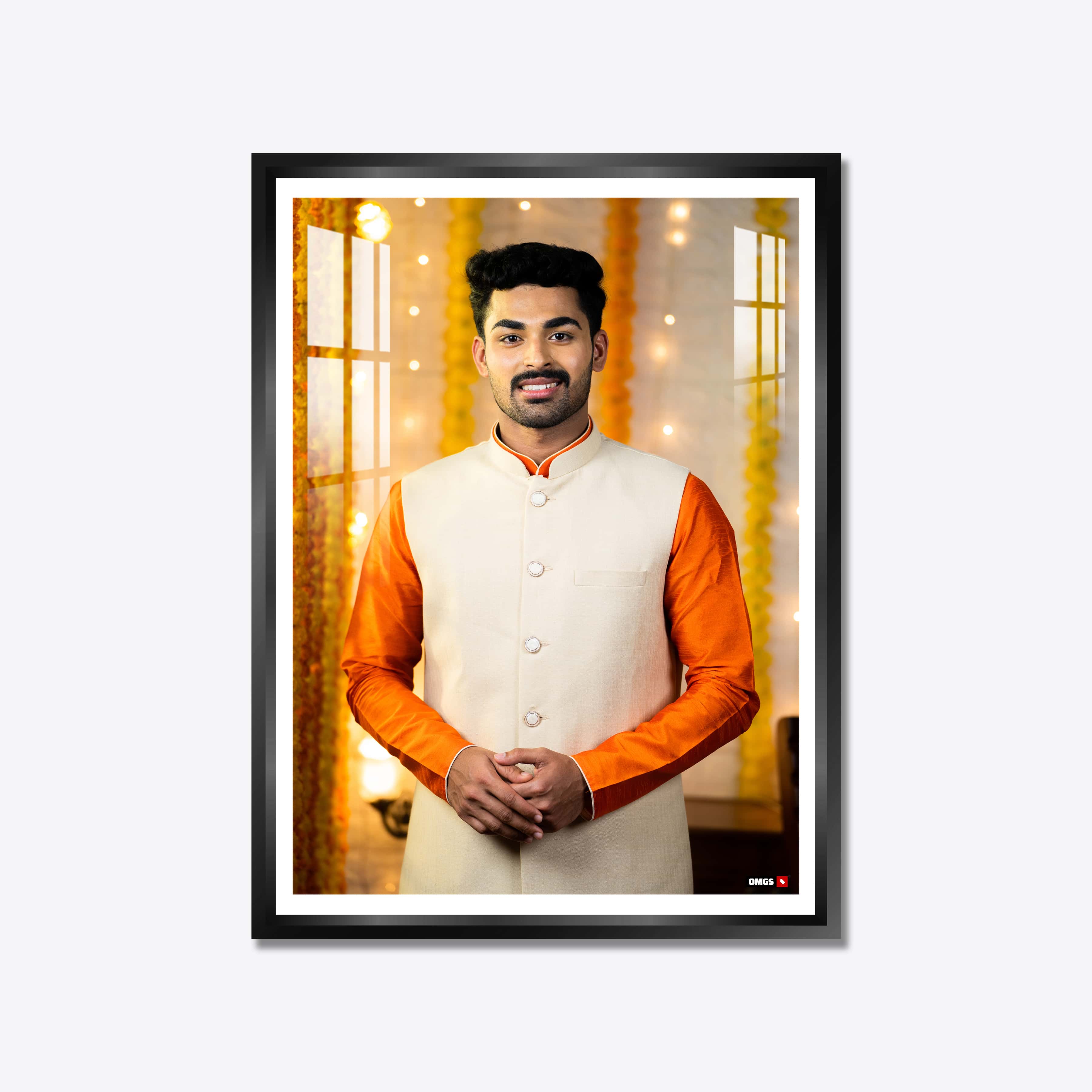 Our team prints on premium acrylic and hand-fits it into the sleek aluminium frame at our India facility.