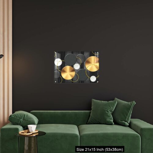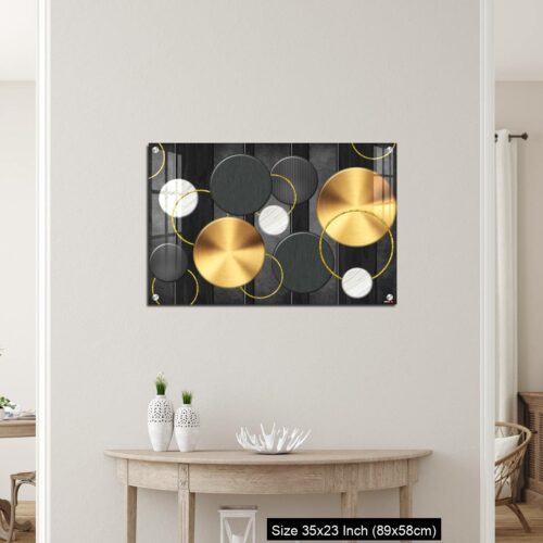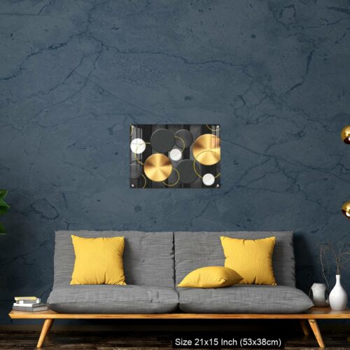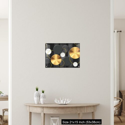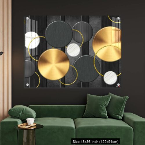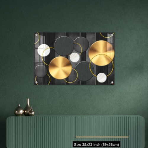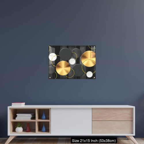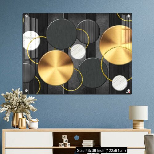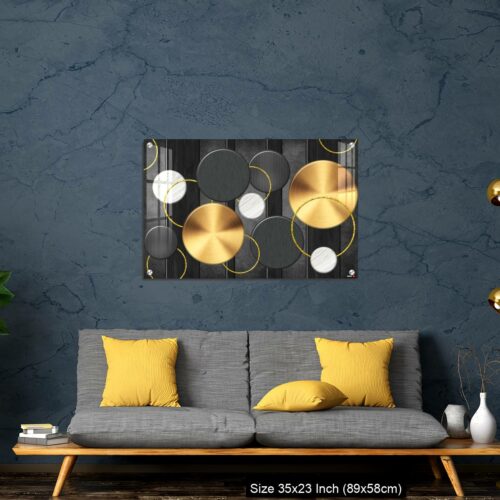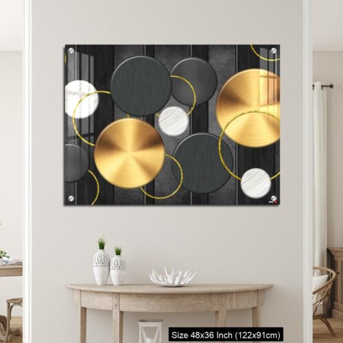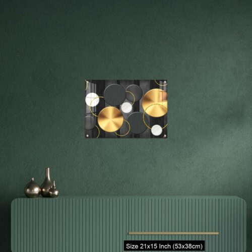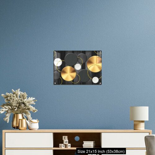 Acrylic Wall Decor – White and golden circles in dark gray background decorative wall art.