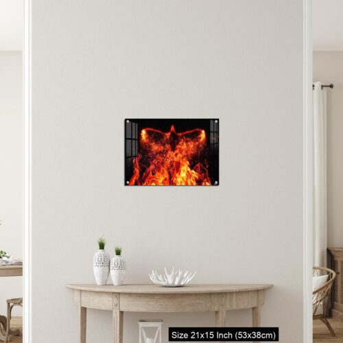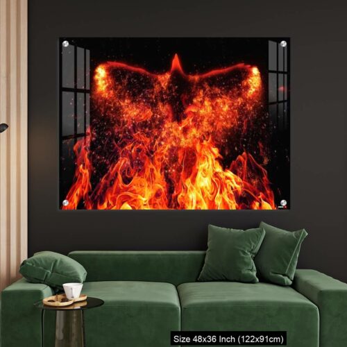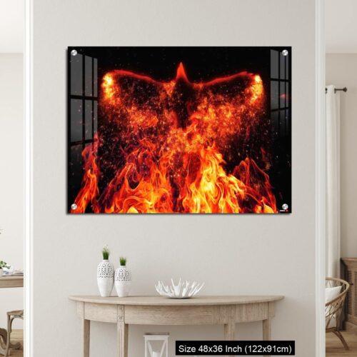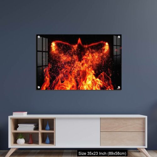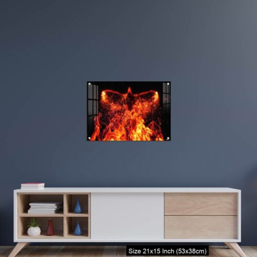 Acrylic Wall Decor – A firebird flapping its wings in the dark