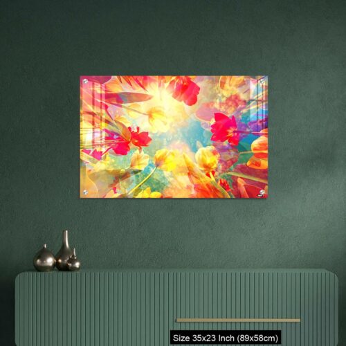 OMGs® Acrylic Wall Decor – Abstract colored background with beautiful flowers, tulips and soft hues