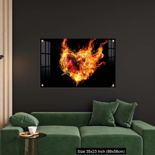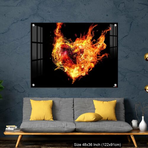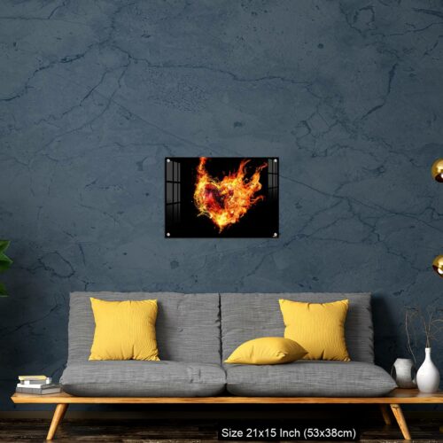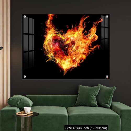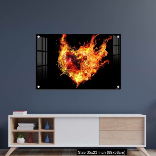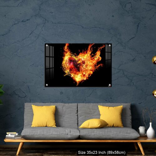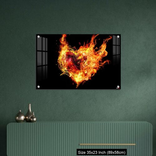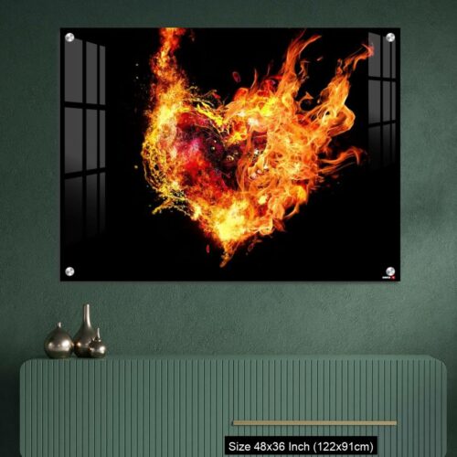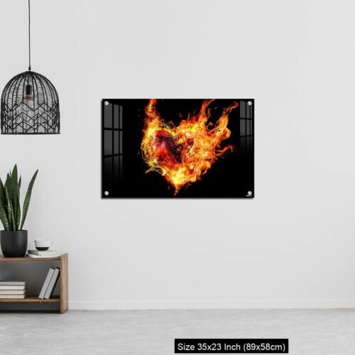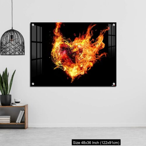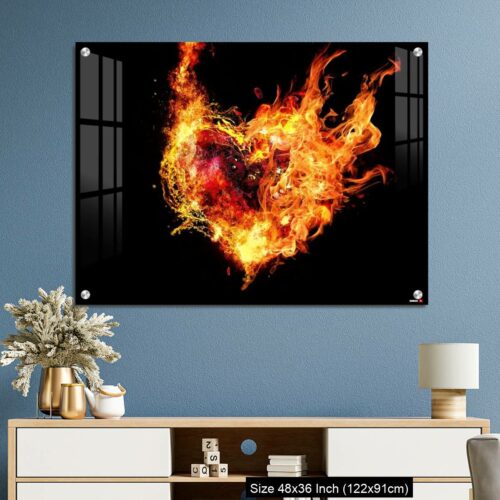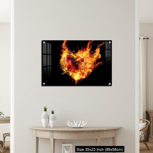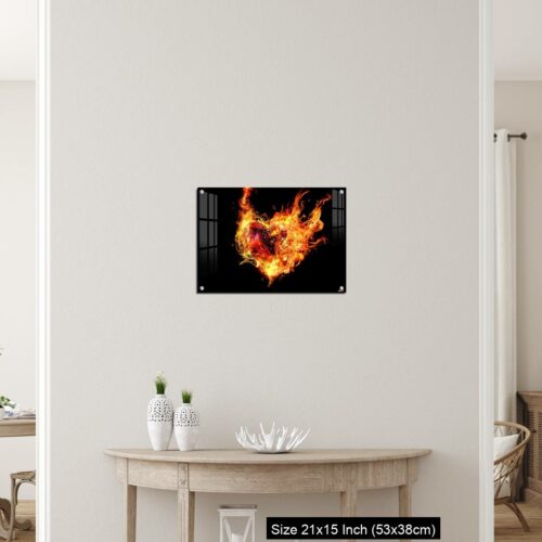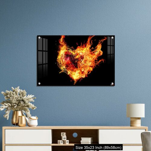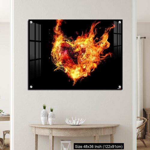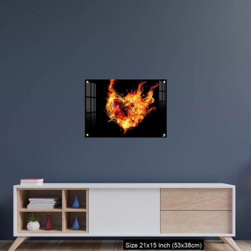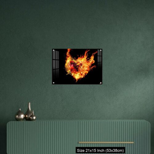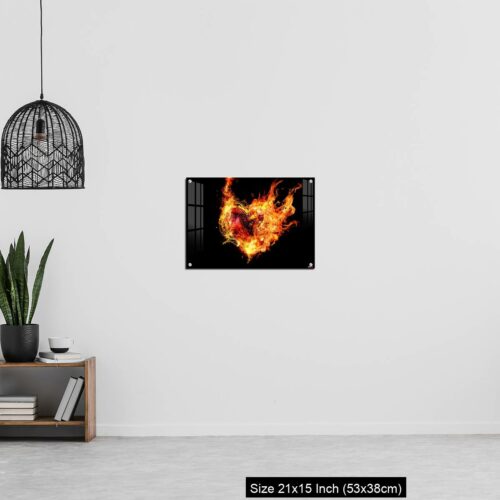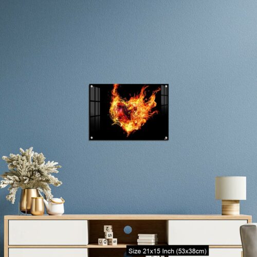 Acrylic Wall Decor – Abstract fire heart illuminating the dark
