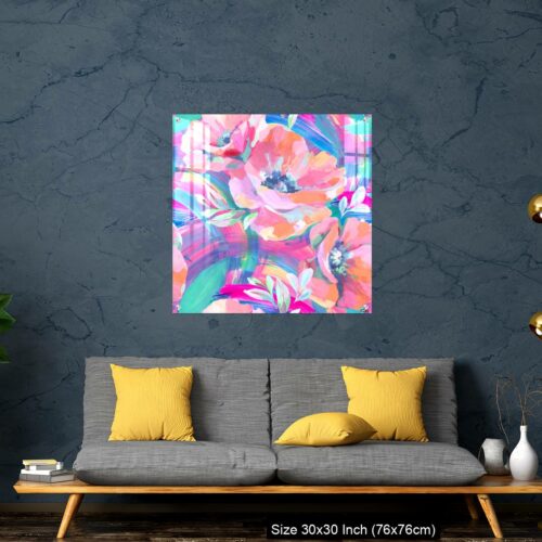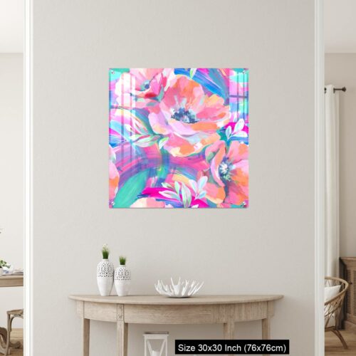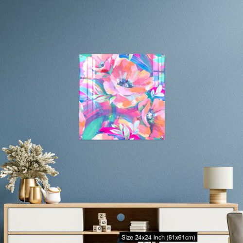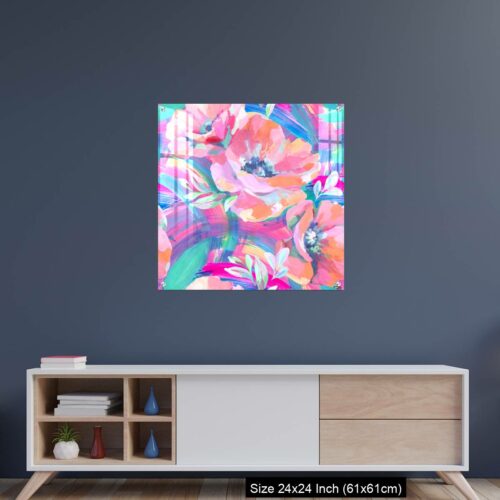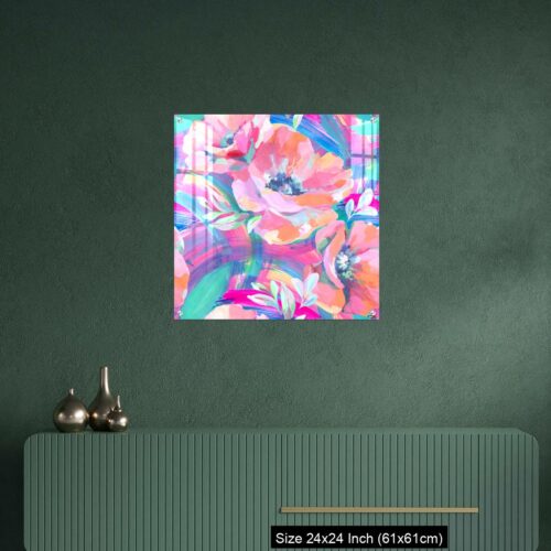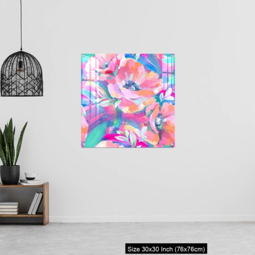 Acrylic Wall Decor – Acrylic flowers, leaves, paint smears seamless pattern.