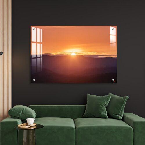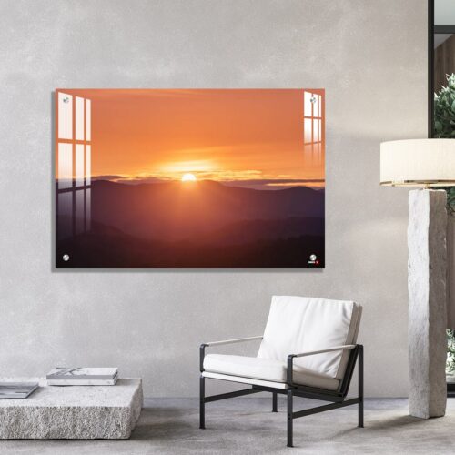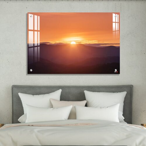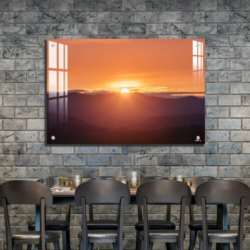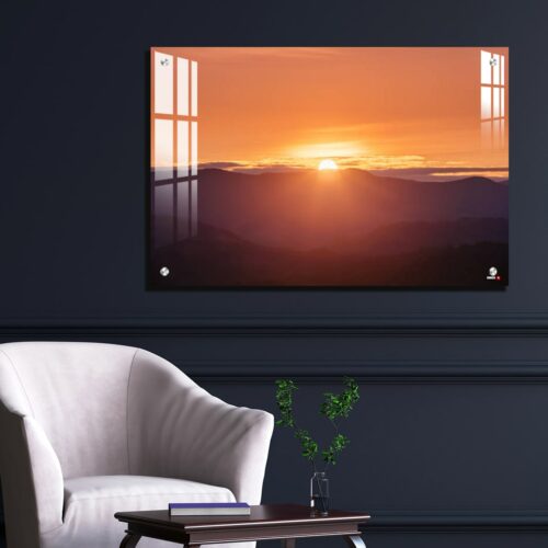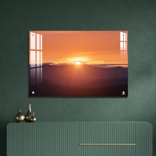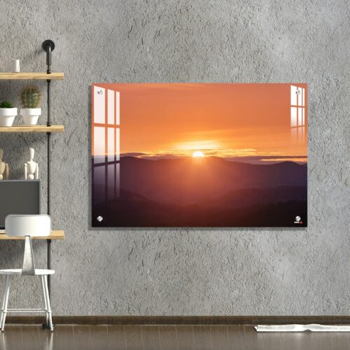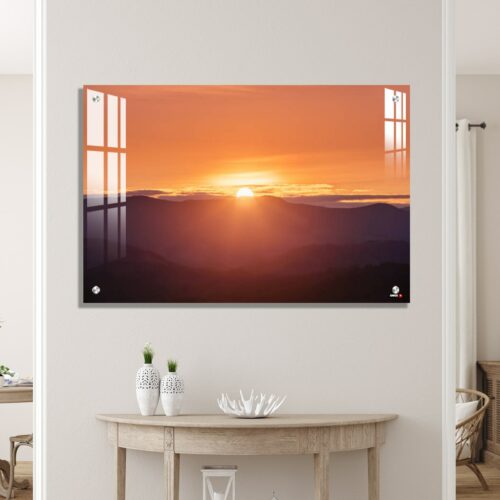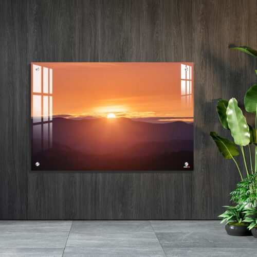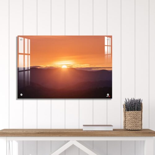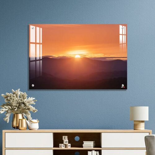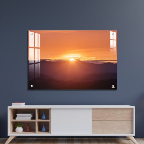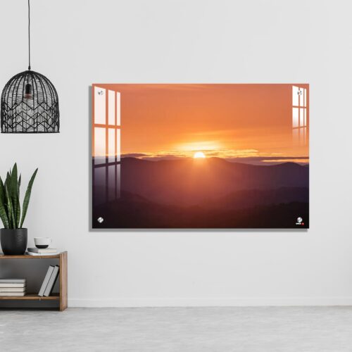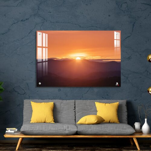 OMGs® Acrylic Wall Decor – Beautiful Sunrise. Sun Rays Enlighten The Meadow With Trees. Panoramic view