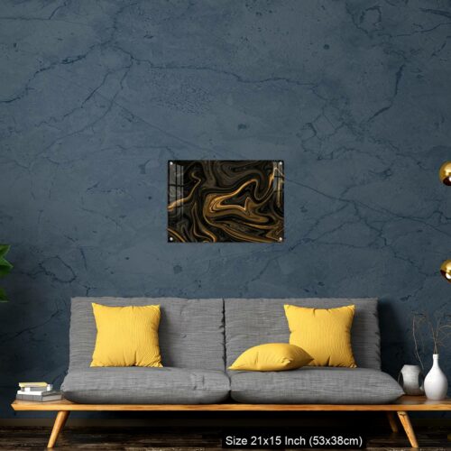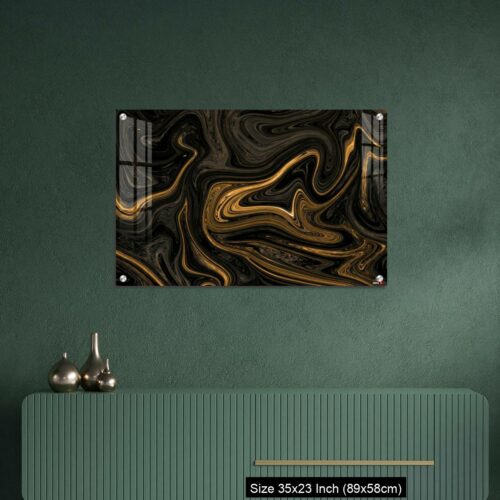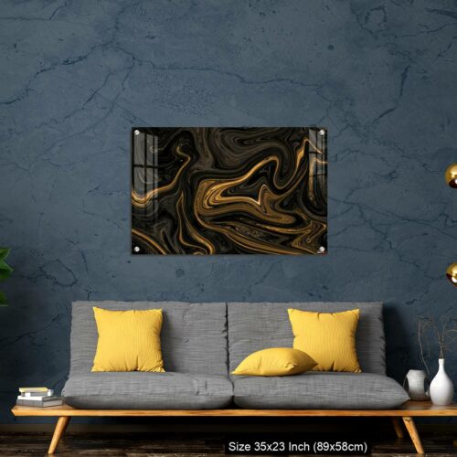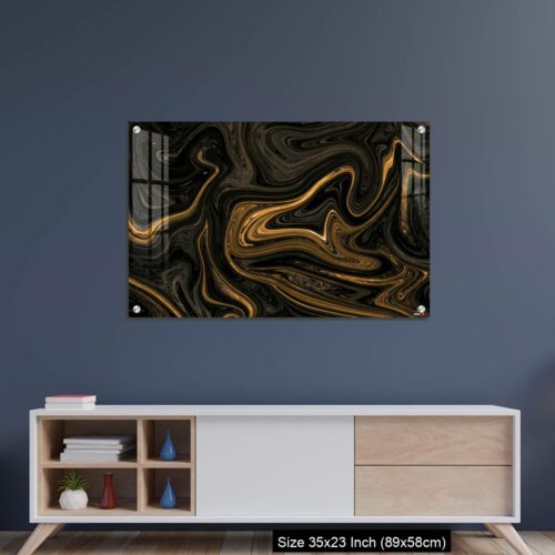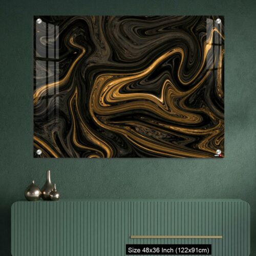 Acrylic Wall Decor – Black Golden Liquied Pattern Background With Design For Wall, Floor