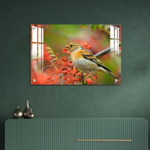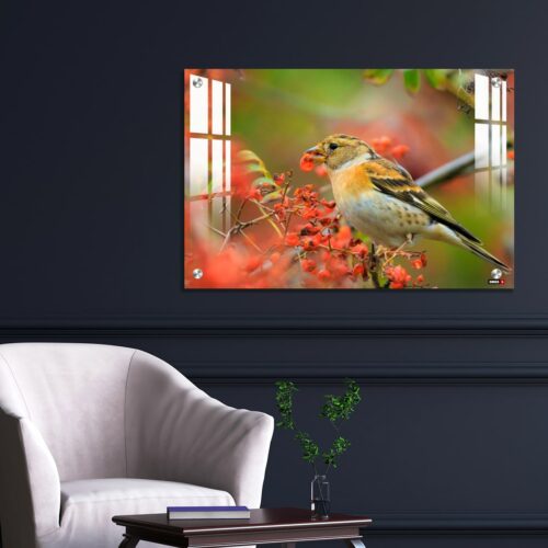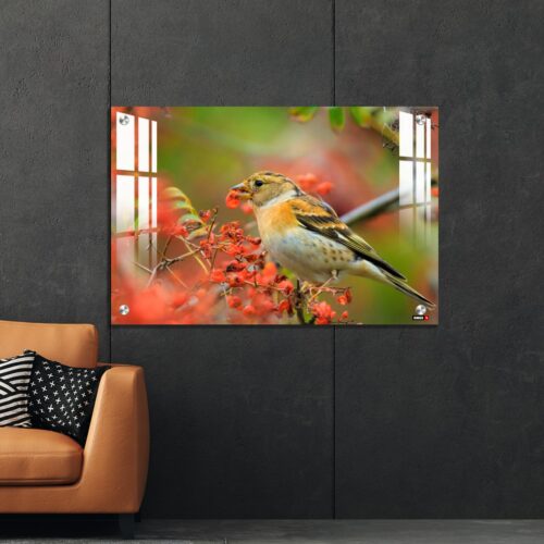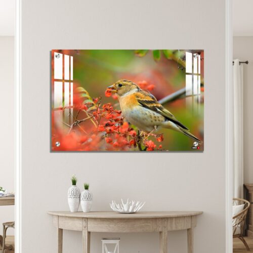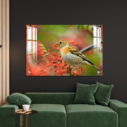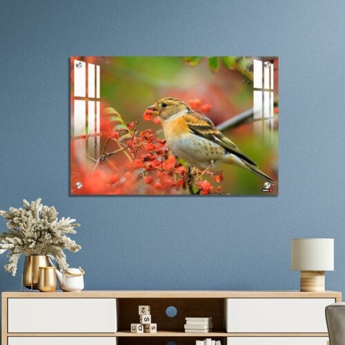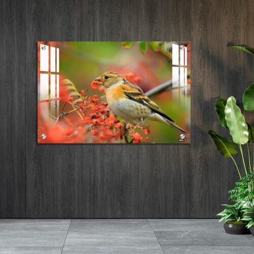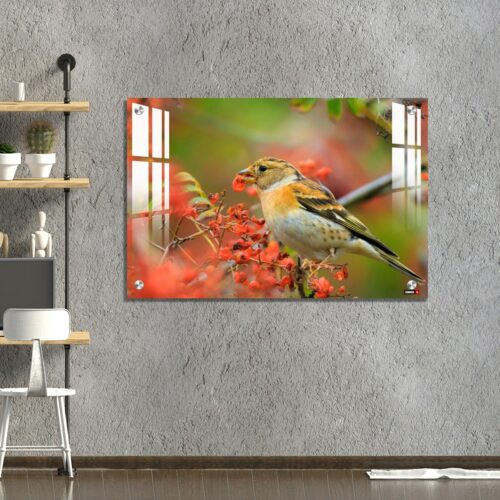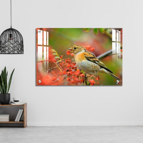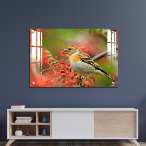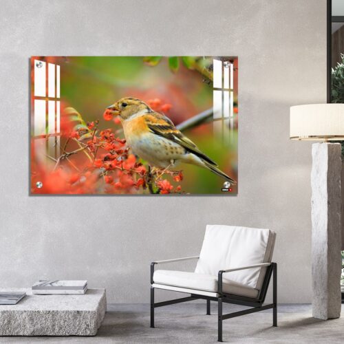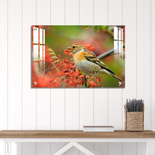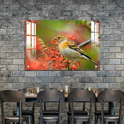 Acrylic Wall Decor – Brambling bird, Fringilla Montifringilla, in Winter Plumage Feeding Berries