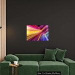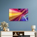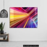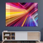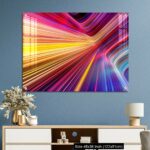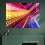 3d render, abstract background with colorful spectrum. Bright pink yellow neon rays and glowing lines.