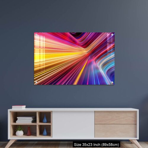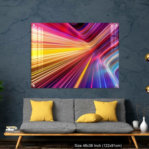 Acrylic Wall Decor – Bright pink yellow neon rays and glowing lines.