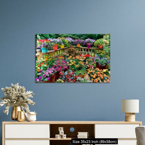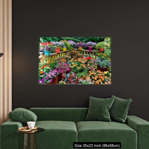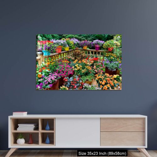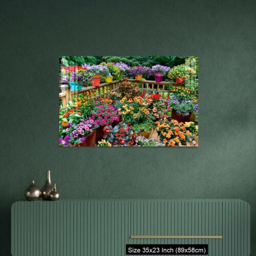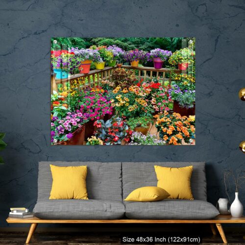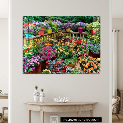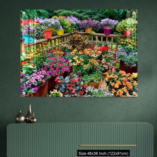 Acrylic Wall Decor – Colorful flowers and pots on deck