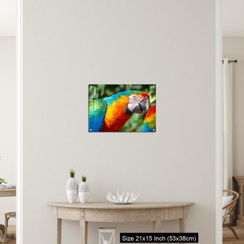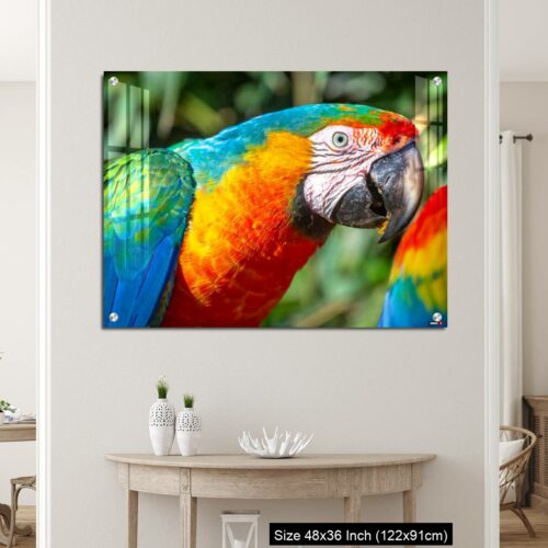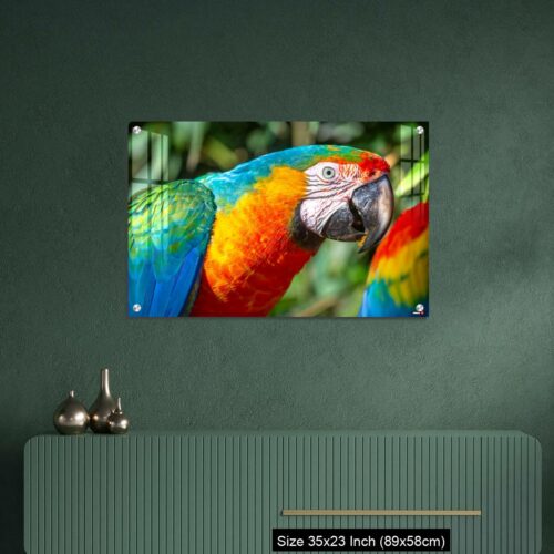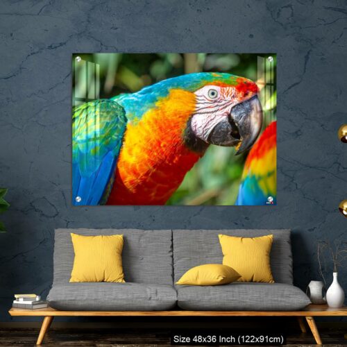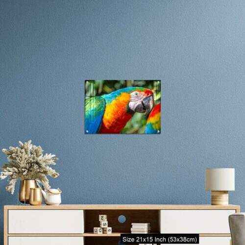 Acrylic Wall Decor – Colorful Macaw parrot looking at camera in Brazil