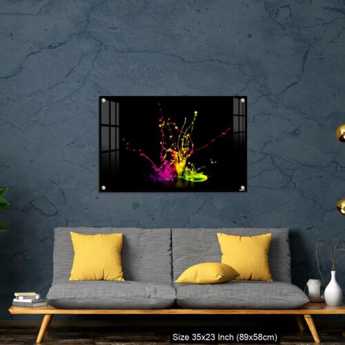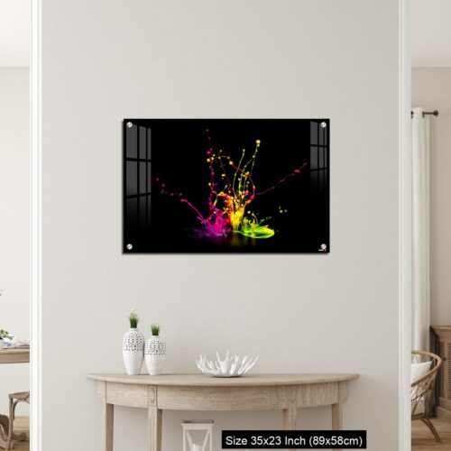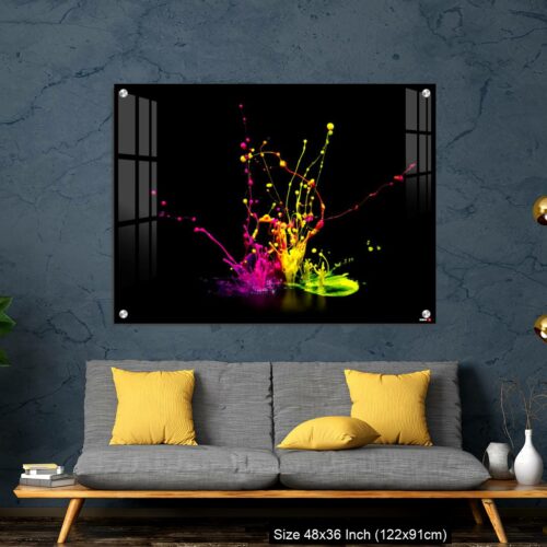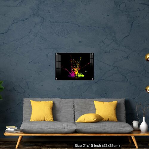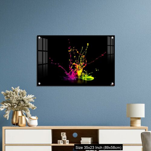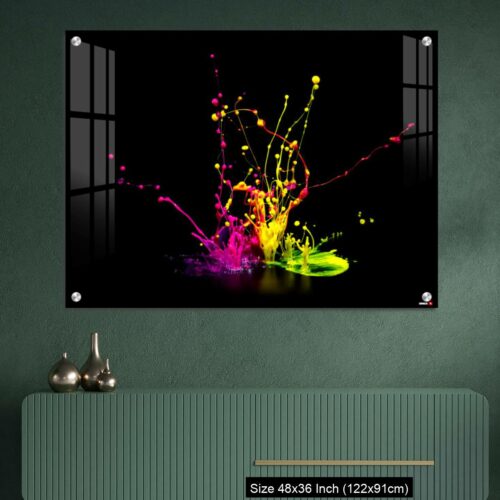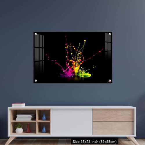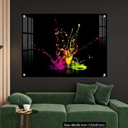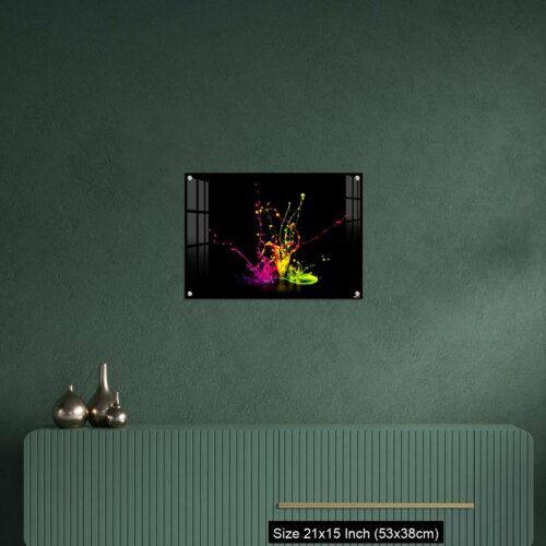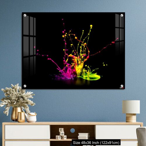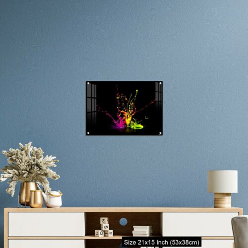 Acrylic Wall Decor – Colorful paint splashing on audio speaker isolated on black background