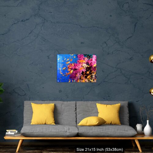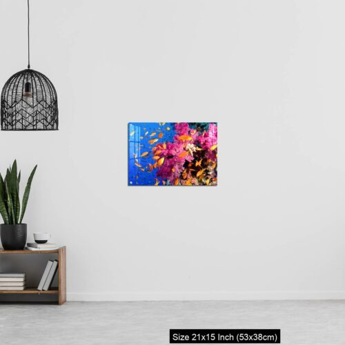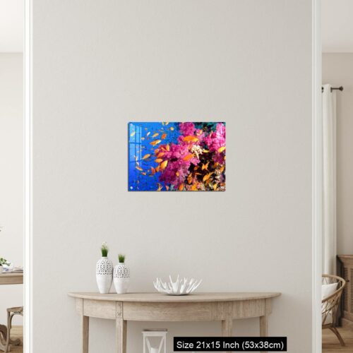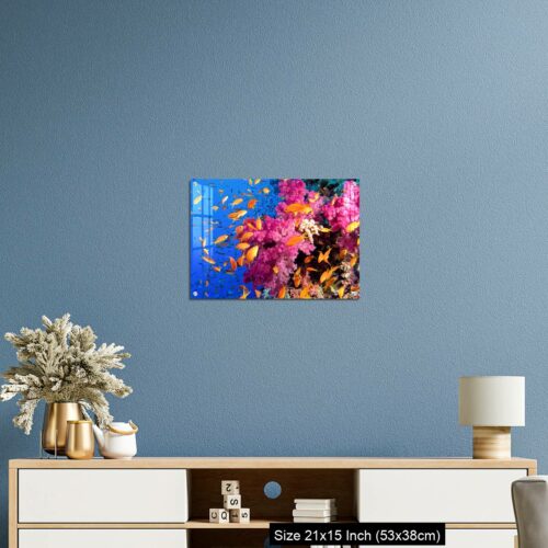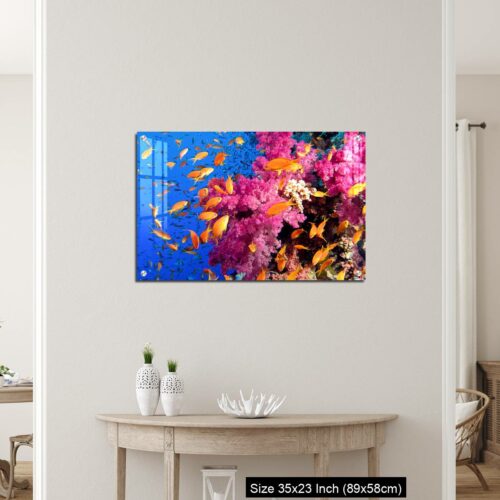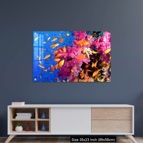 Acrylic Wall Decor – Colorful underwater picture of a coral reef, with goldfish
