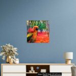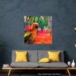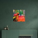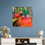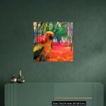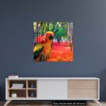 Cute Parrot Holding a Red Rose in a Colorful Forest