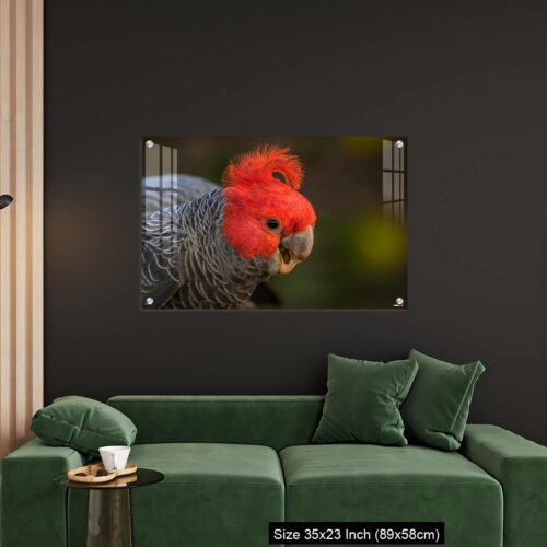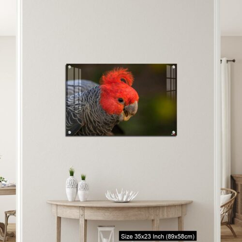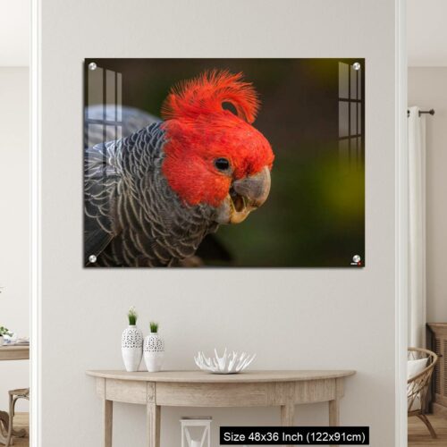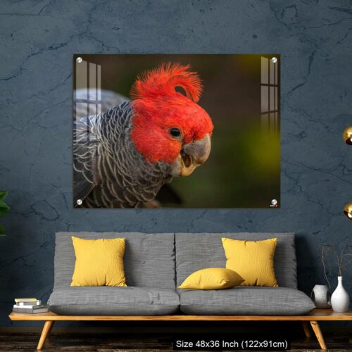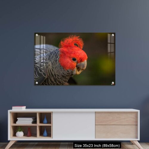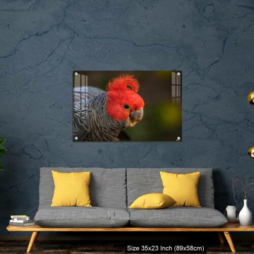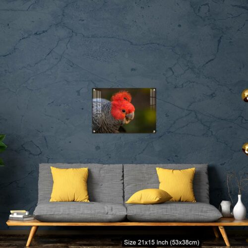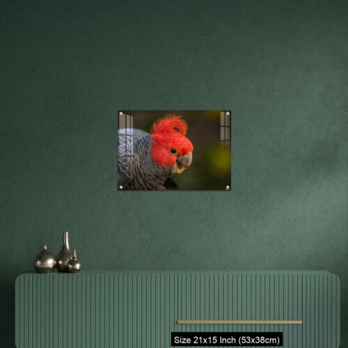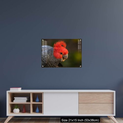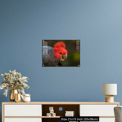 Acrylic Wall Decor – Gang-gang Cockatoo male eating food in a garden