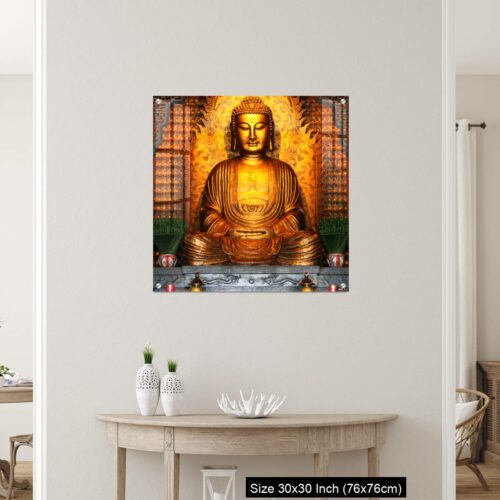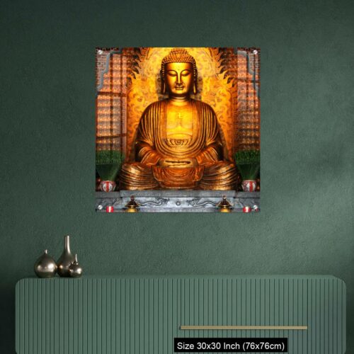Acrylic Wall Decor – golden buddha statue in chinese temple