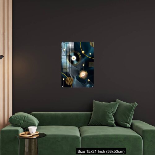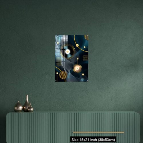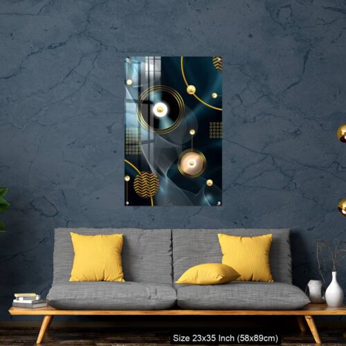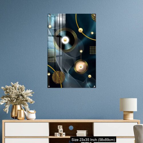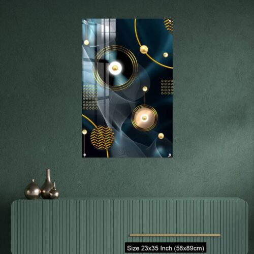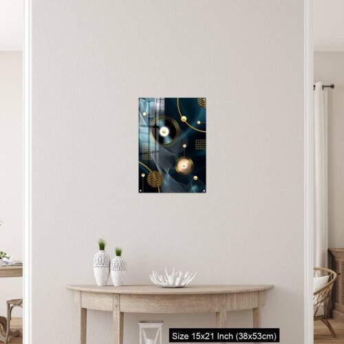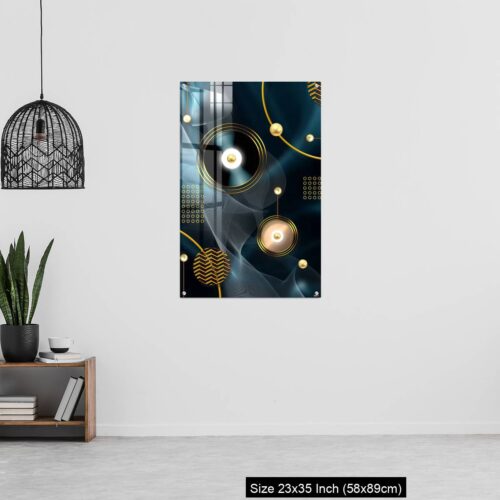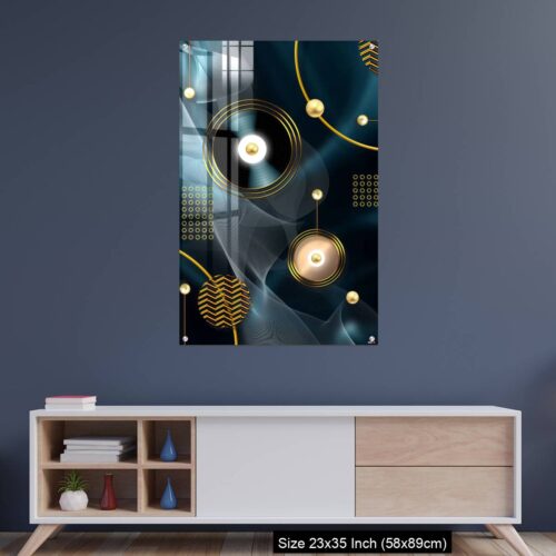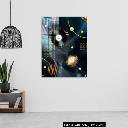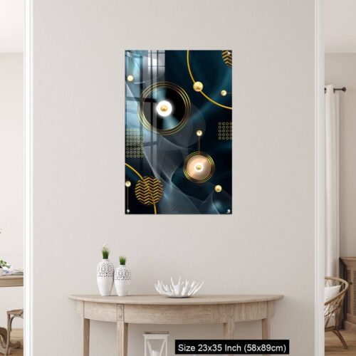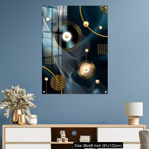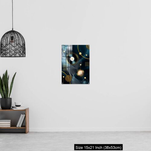 OMGs® Acrylic Wall Decor – Golden lines and circle in dark blue background