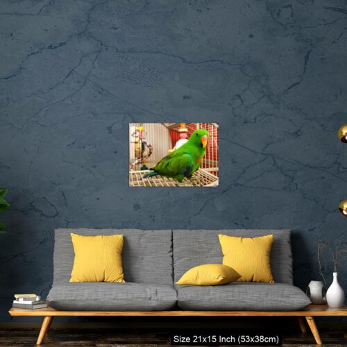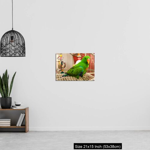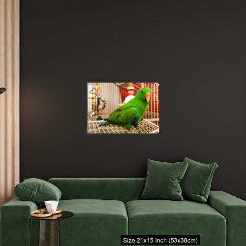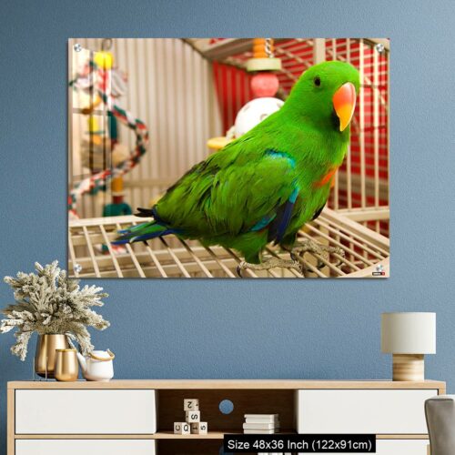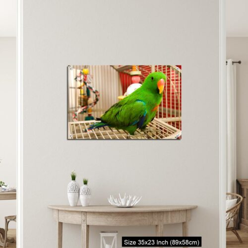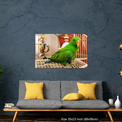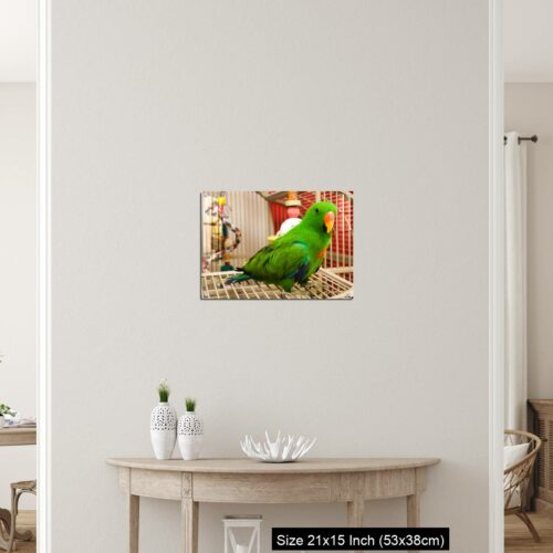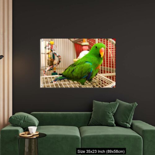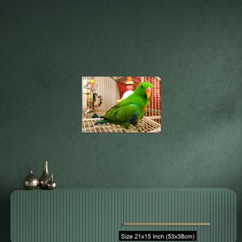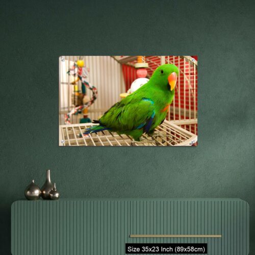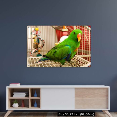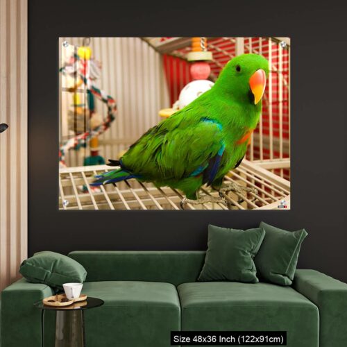 Acrylic Wall Decor – Green parrot perched on the open door of its cage