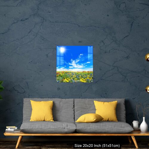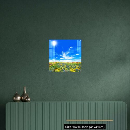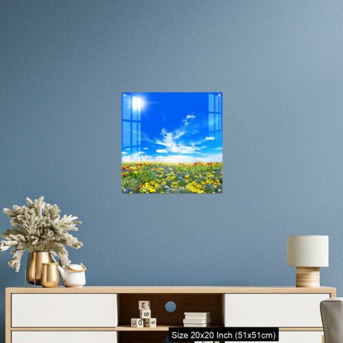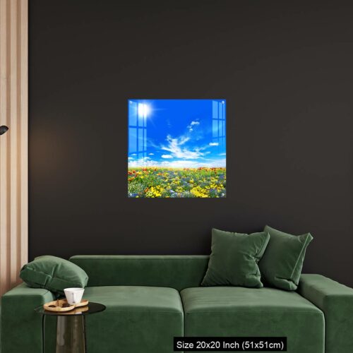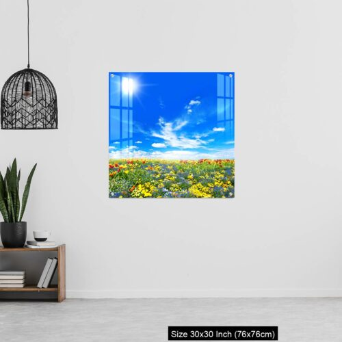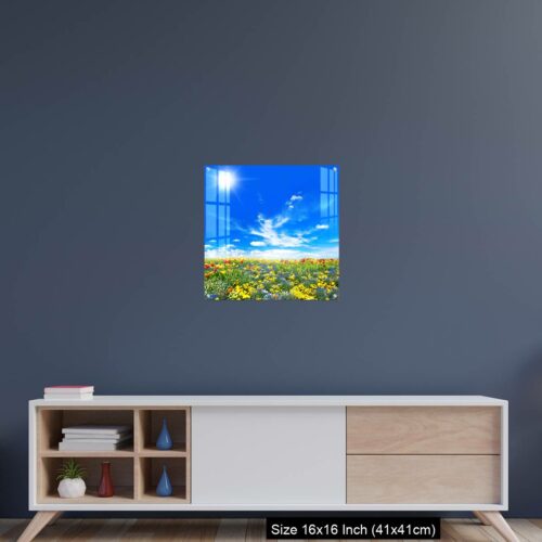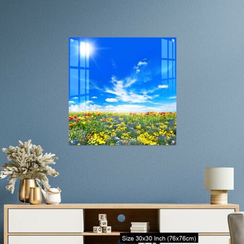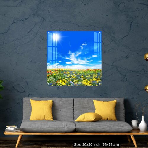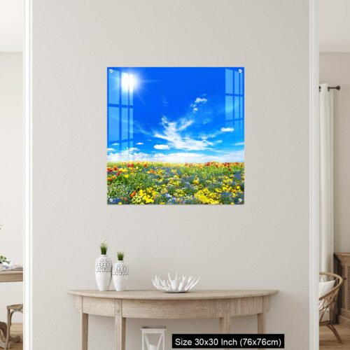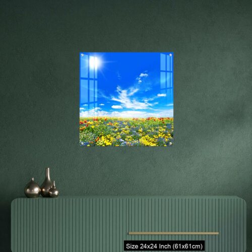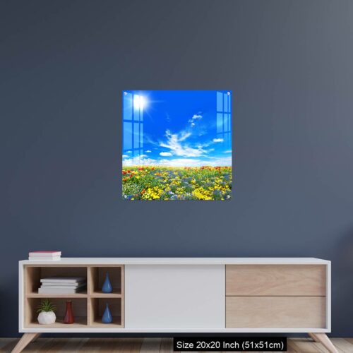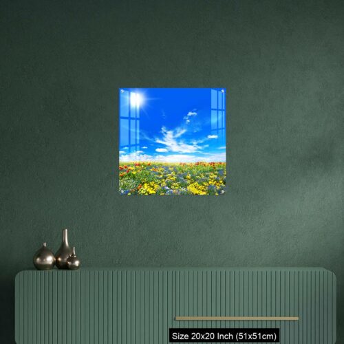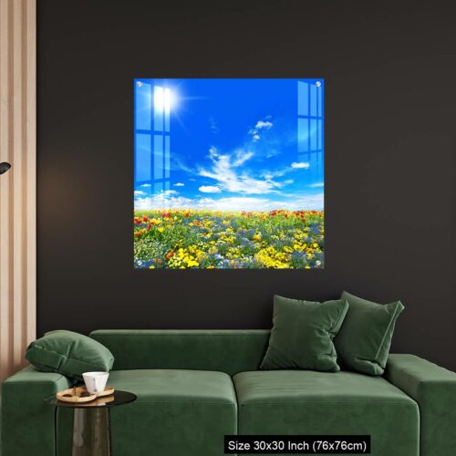 Acrylic Wall Decor – Meadow with colorful spring flowers. Tulips
