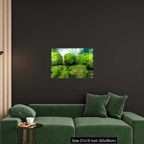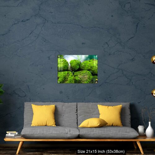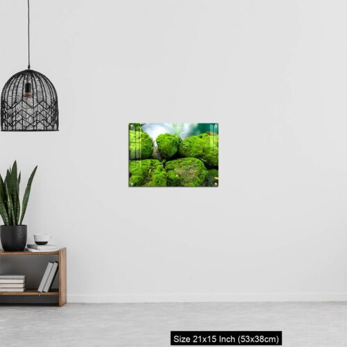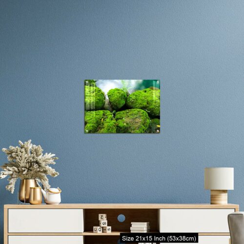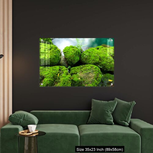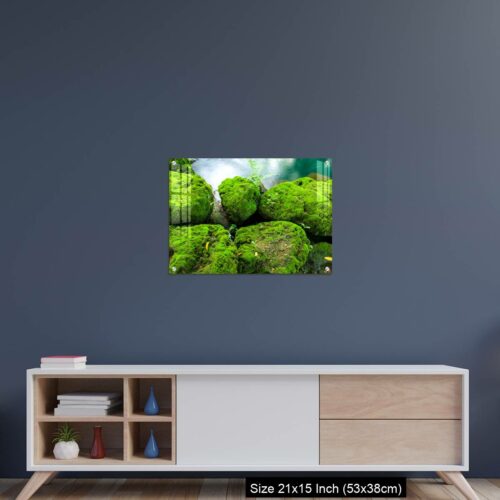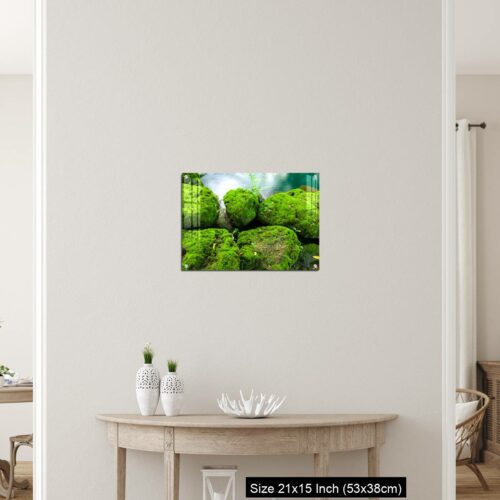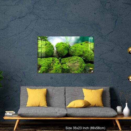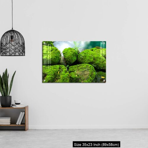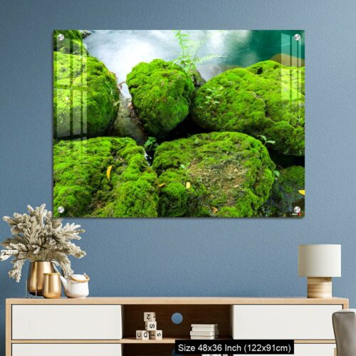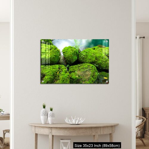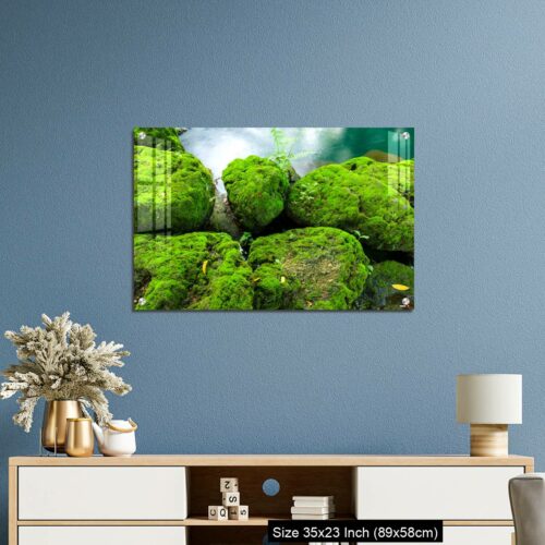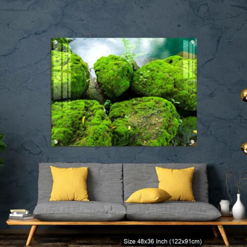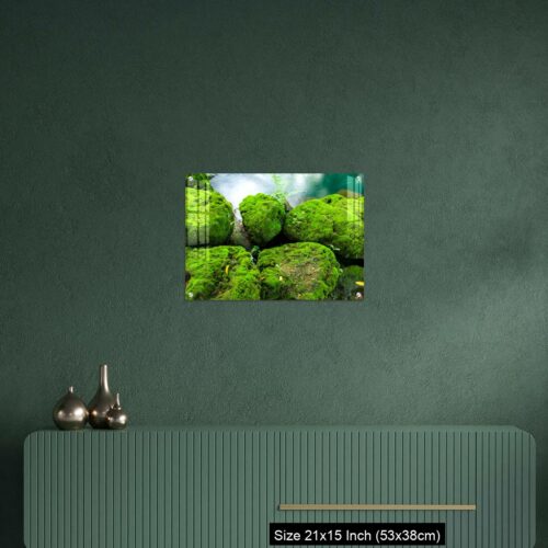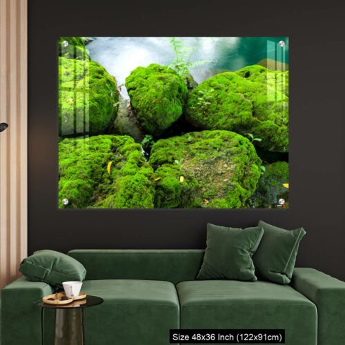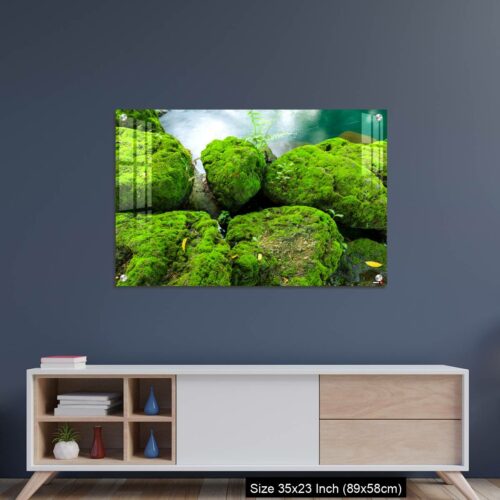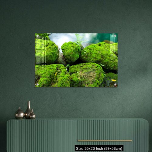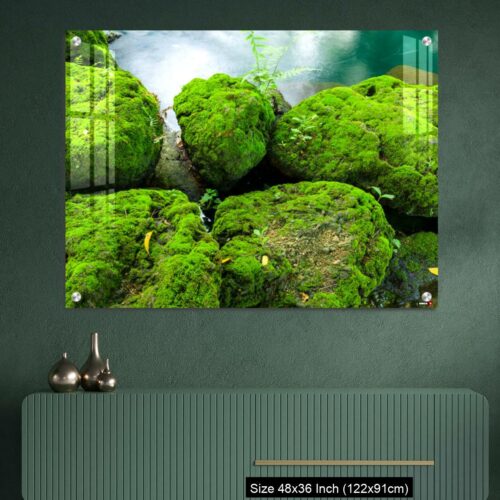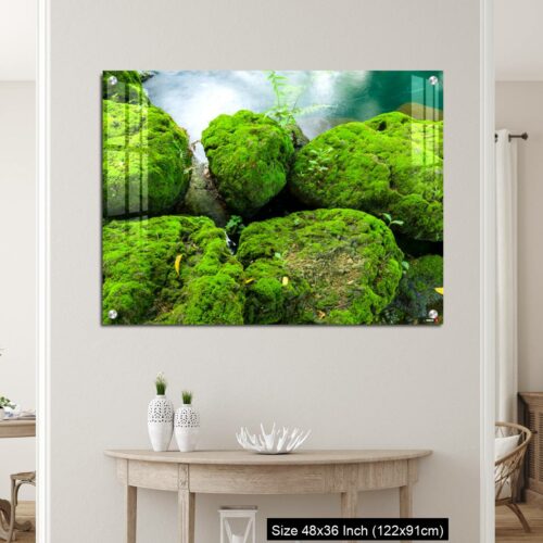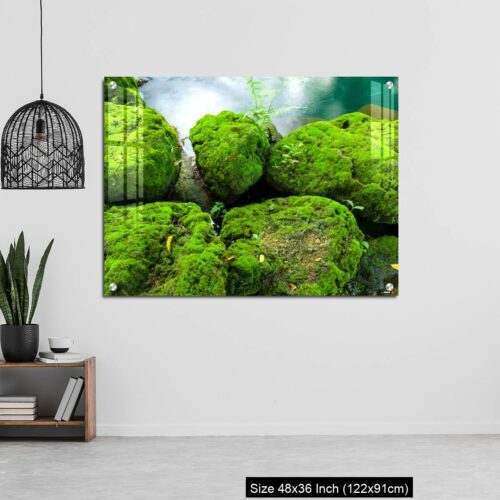 Acrylic Wall Decor – Mossy rocks with green water background