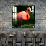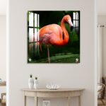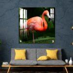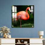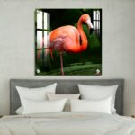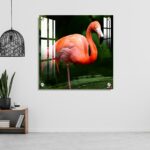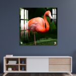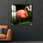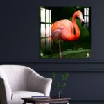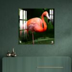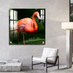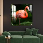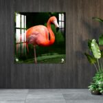 Acrylic Wall Decor – Orange Flamingo Bird Against Green Backround