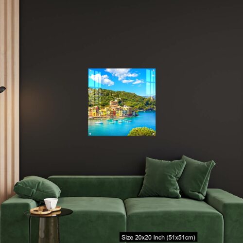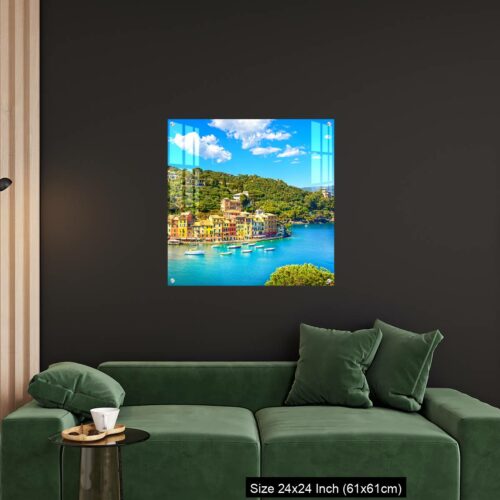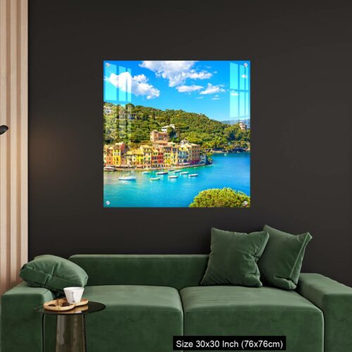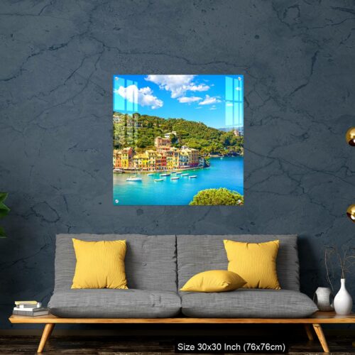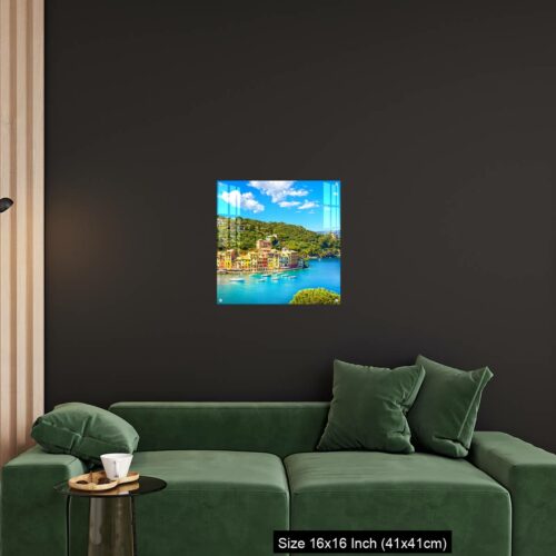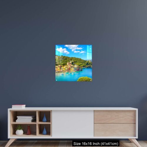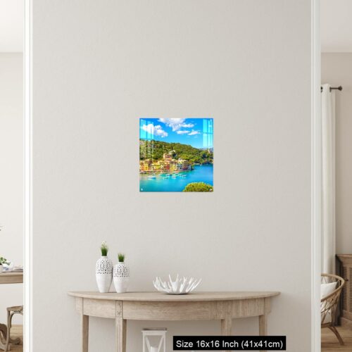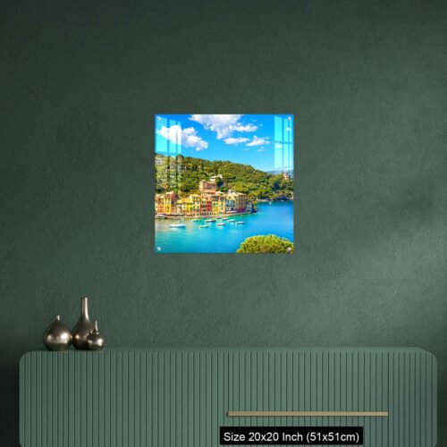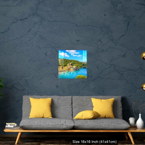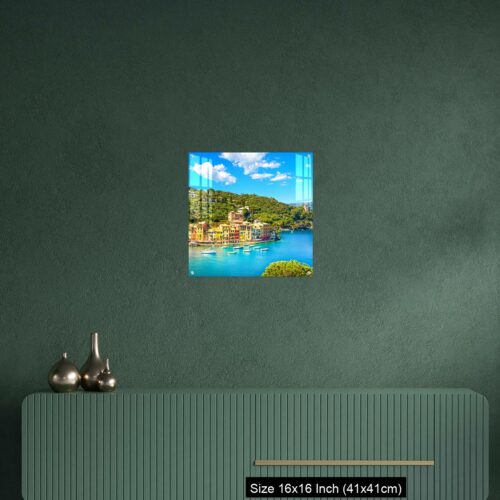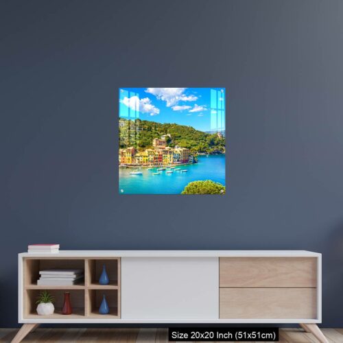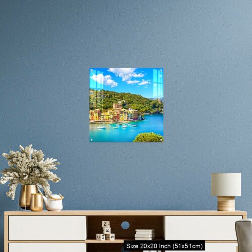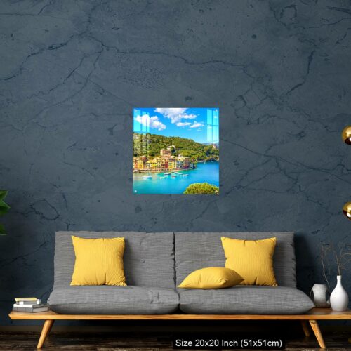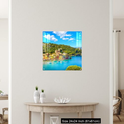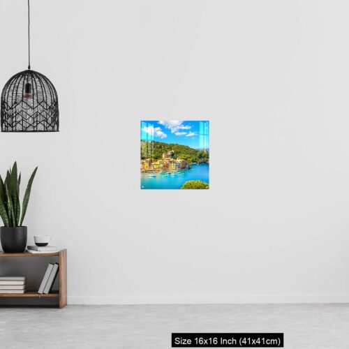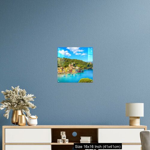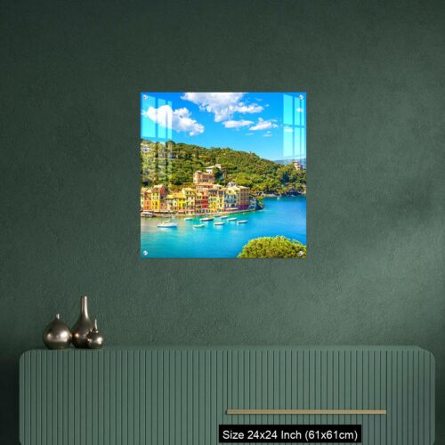 Acrylic Wall Decor – Portofino luxury village landmark, panoramic aerial view.