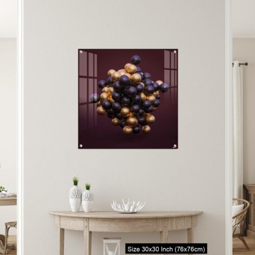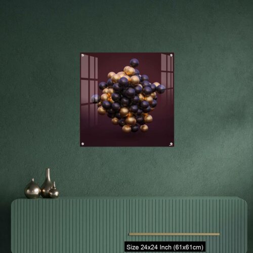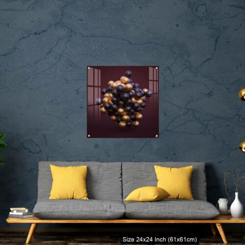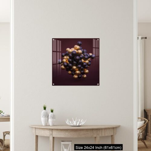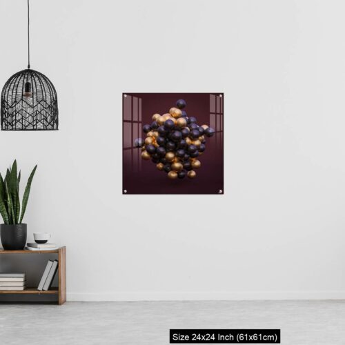 OMGs® Acrylic Wall Decor – purple and gold golf balls on an amaranth background.