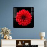 Red dahlia,like a ball of fire,on black background