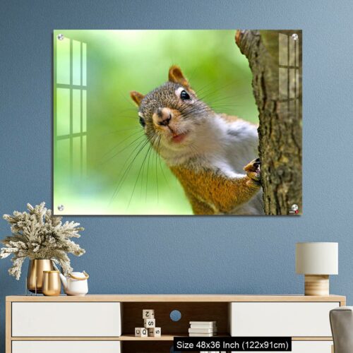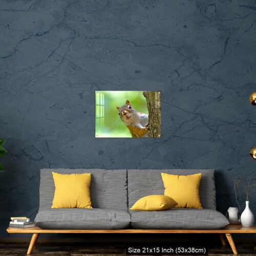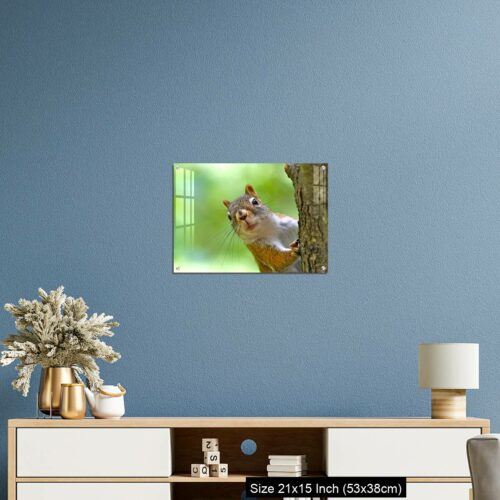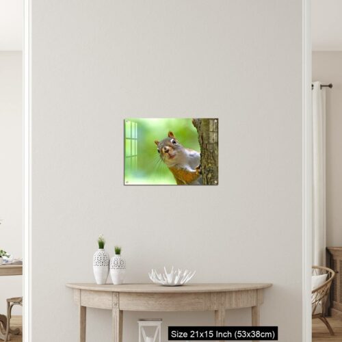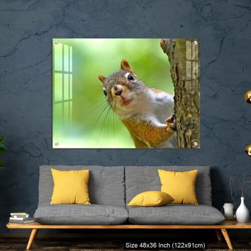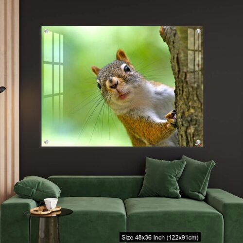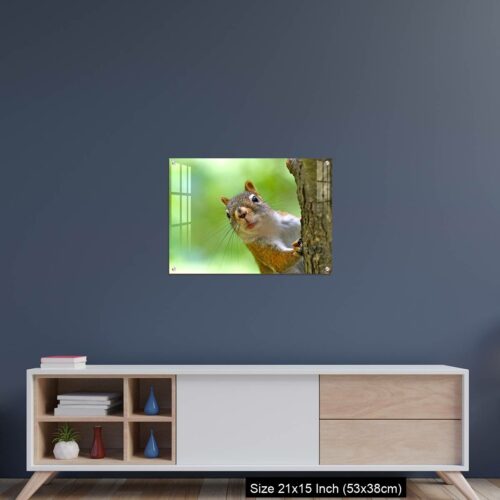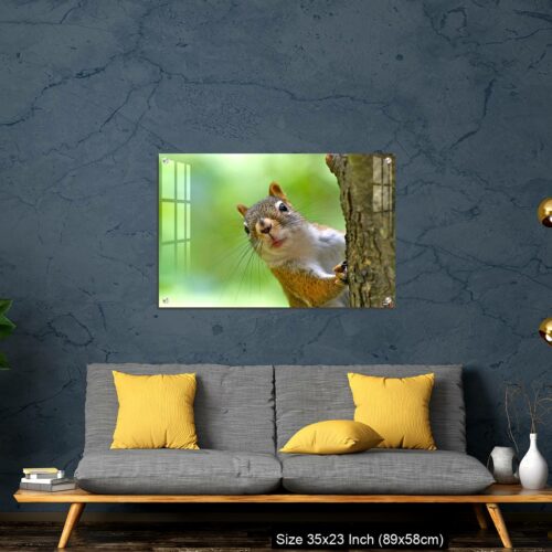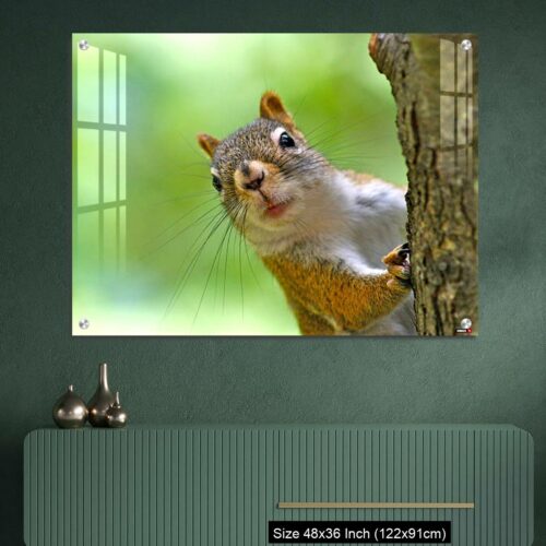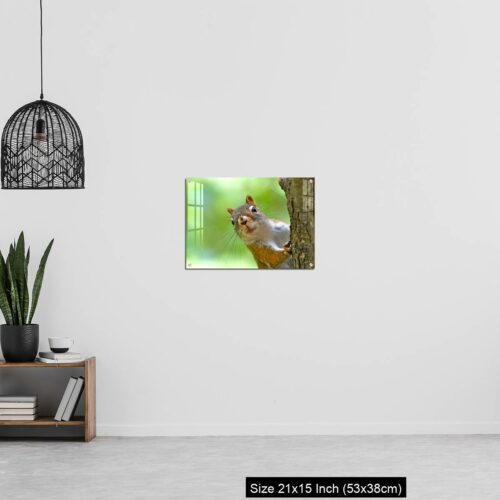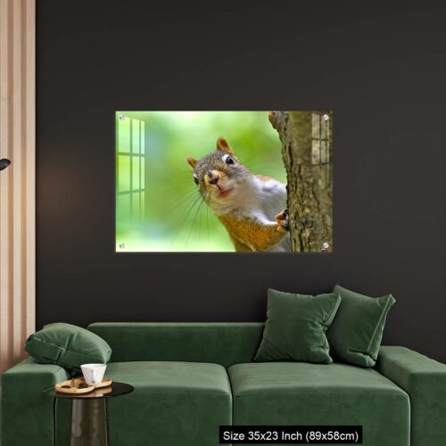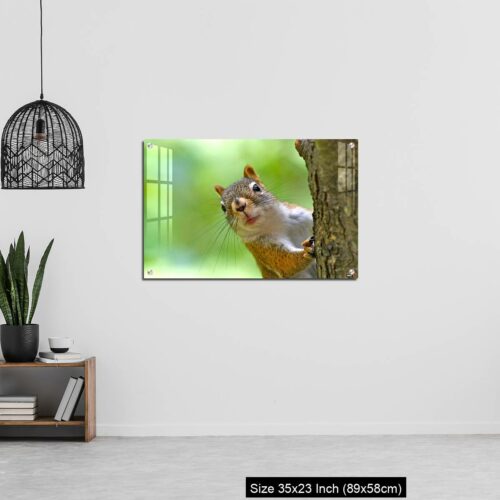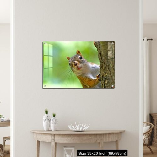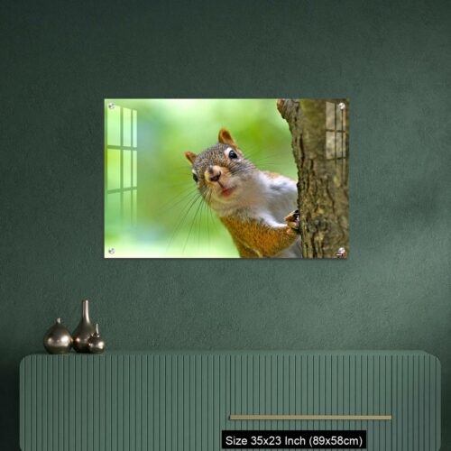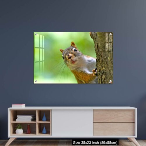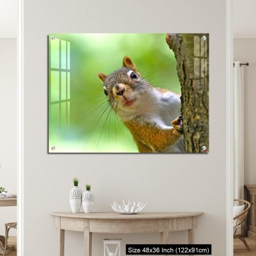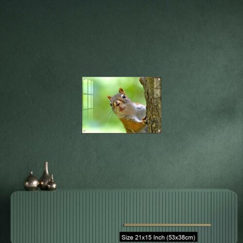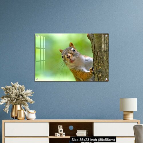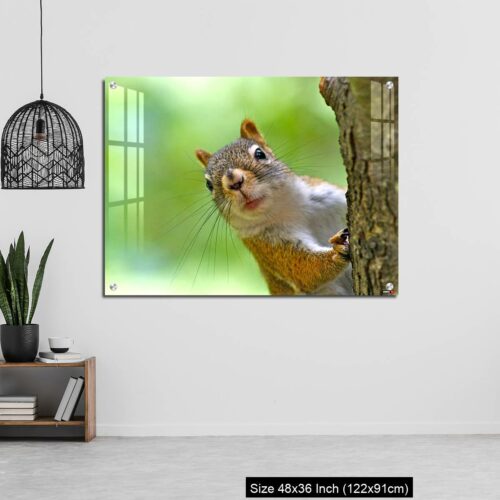 Acrylic Wall Decor – Red Squirrel Looking Around a Tree