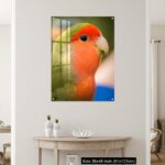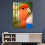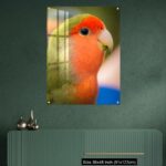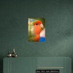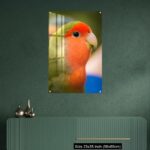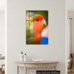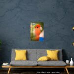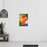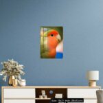 Vibrant rosy-faced lovebird (Agapornis roseicollis) against a green backdrop
