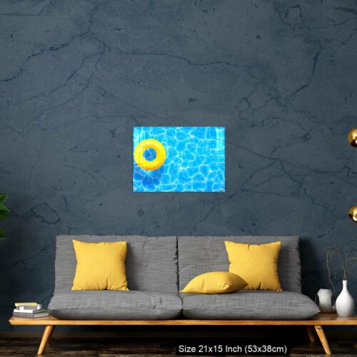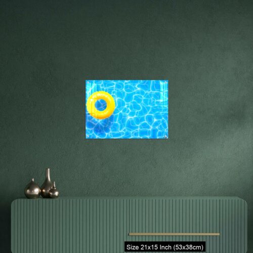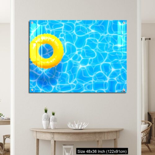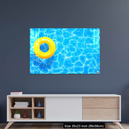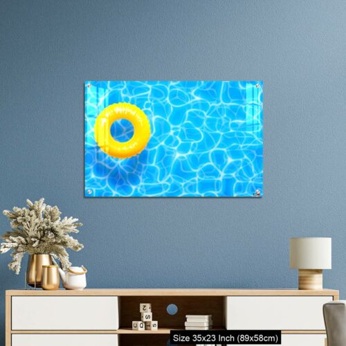 Acrylic Wall Decor – Water pool summer background with yellow pool float ring.