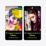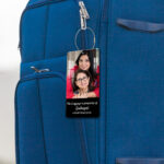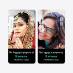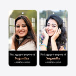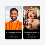 Upload two of your favourite photos — one for each side — and add your name and contact number for easy identification wherever your travels take you.